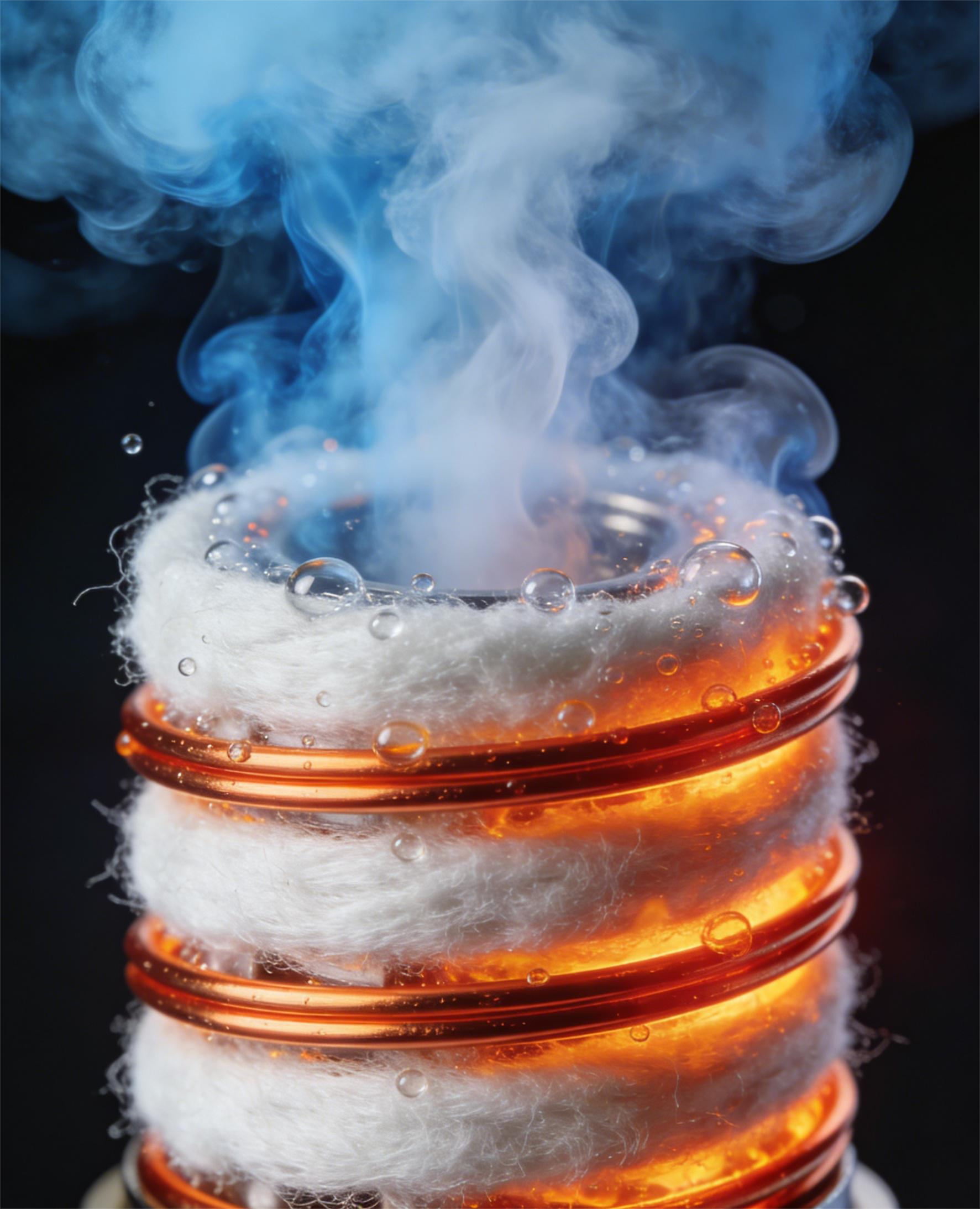 Gdy grzałka osiągnie swoją temperaturę roboczą, e-liquid znajdujący się na przylegającej do niej bawełnie zaczyna wrzeć. Główne rozpuszczalniki bazowe w płynie – glikol propylenowy (PG) oraz gliceryna roślinna (VG) – pod wpływem wysokiej temperatury przechodzą gwałtowną przemianę fazową ze stanu ciekłego w gazowy. Podczas tego gwałtownego rozprężania, lotne rozpuszczalniki porywają ze sobą rozpuszczone cząsteczki nikotyny oraz chemiczne aromaty spożywcze, tworząc gęsty aerozol składający się z milionów mikroskopijnych kropelek. To właśnie to zjawisko postrzegamy gołym okiem jako „biały dym”.